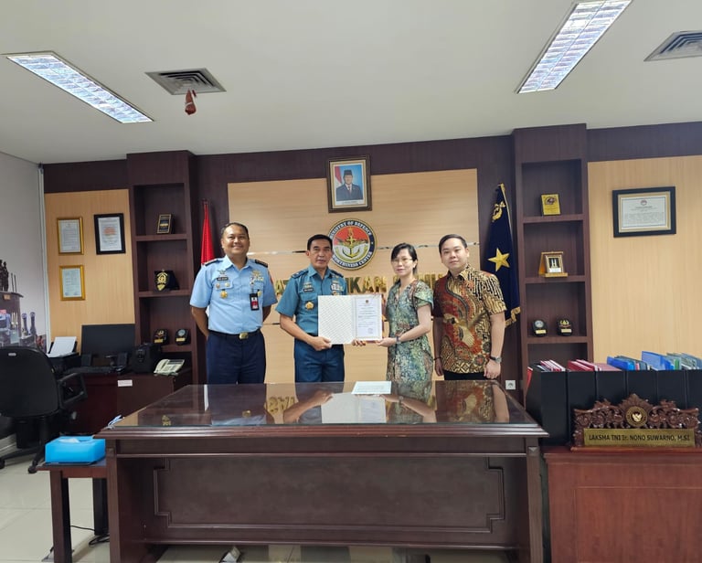 Jakarta, March 2024, Kapuslaik Kemhan melaksanakan penyerahan Sertifikat COA ADARS (Certificate Of Approval Approved Defence Aircraft Repair Station) kepada Ibu Mega Melianti selaku Presiden Direktur PT. Aerolla Xenon Trindo (AXTRINDO AERO). Bertempat di Ruang Kerja Kapuslaik Kemhan yang berada di Lantai 10 Gedung Jenderal A.H. Nasution kantor Kementerian Pertahanan RI Jl. Medan Merdeka Barat No. 13 – 14 Jakarta Pusat.